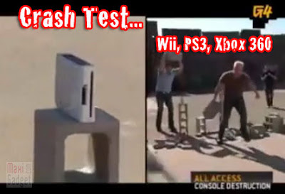 Hormis les qualités Graphiques et de Gameplay, le choix d’une console repose également sur la fiabilité et la résistance aux chocs. C’est pourquoi il est impératif de regarder la video qui suit, qui met en compétition les consoles Next-Gen, Wii, Playstation 3 et XBox 360, dans un Crash Test peu conventionnel. Cette fois, nos trois consoles sont entre les mains de deux gaillards musclés qui vont leur faire subir un traitement de choc. Âmes sensibles s’abstenir !