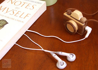 Plus un gadget qu’un lecteur MP3, cet appareil photo miniature en bois (fait main), que l’on passe autour du cou, mise sur le design et l’originalité. Accessoirement il lit les formats audio MP3, WMA, et OGG, et ne dispose malheureusement que de 256Mo de mémoire interne. Disponible dans l’immédiat en Corée au prix de 28 euros (livré avec des écouteurs).