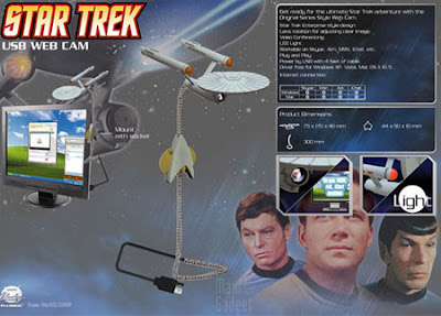 Je ne compte plus le nombre d’accessoires USB déclinés sur le theme de Star Trek, la série culte de science fiction des années 60. Mais je suis tout de même surpris de découvrir cette nouvelle webcam USB HD (720p) en forme du vaisseau Enterprise. Un bel objet collector qui ravira les passionnés ! Pas de prix ni de disponibilité, mais l’appareil est en approche, c’est juste une question de semaines… (source)