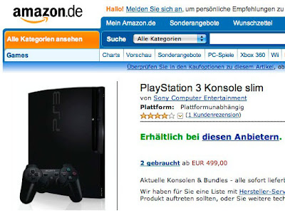 La Sony Playstation 3 Slim vient de faire une apparition sur le site Amazon d’Allemagne au prix de 499 euros. Cette nouvelle console PS3 (120Go) amincie et estampillée du nouveau logo, semble bien réelle. Il ne manque plus qu’à connaitre ses caractéristiques et sa disponibilité pour être définitivement rassuré.