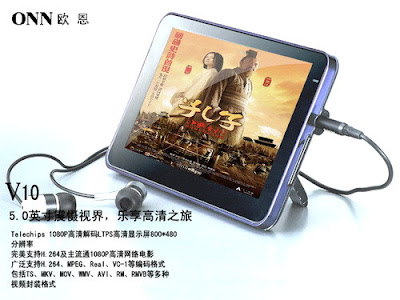 La firme chinoise ONN, vient de lancer sur le marché asiatique, un nouveau lecteur multimédia portable sous la référence V10. Comme la plupart des nouveaux PMP sortis récemment, ce modèle propose le support full HD 1080p, avec écran tactile 5 pouces (résolution 800×480), sortie HDMI, port USB OTG, et un player compatible avec de nombreux formats audio et vidéo (VOB, DAT, FLV, H.264, XviD, MKV, TS, MOV, MP4, AVI, RM, RMVB, SWF). Un sacré baladeur disponible pour le moment en Asie à un prix plutot attractif.ONN V10: Baladeur Multimedia Full HD 5"