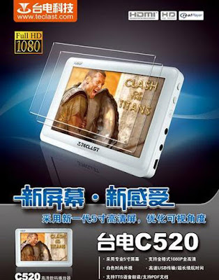 Le prochain lecteur media portable de la firme Teclast sera commercialisé sous la référence C520. Ce nouveau PMP de 5 pouces sous processeur T8100, offre un affichage full HD (résolution 1920×1080), compatible VC-1, MKV, TS, propose en l’occurrence de nombreux formats en lecture vidéo tels que AVI, RM, RMVB, 3GP, DAT, FLV, MP4, MPG, VOB, MKV, MOV, ou en audio avec les formats MP3, AAC, WMA, FLAC, APE. Pour le reste, il dispose d’une capacité mémoire de 4Go extensible via le slot TF, un ebook reader (PDF), fonction GPS, album photo, etc. Manque plus que le prix et la date de sortie, comme d’hab’ !