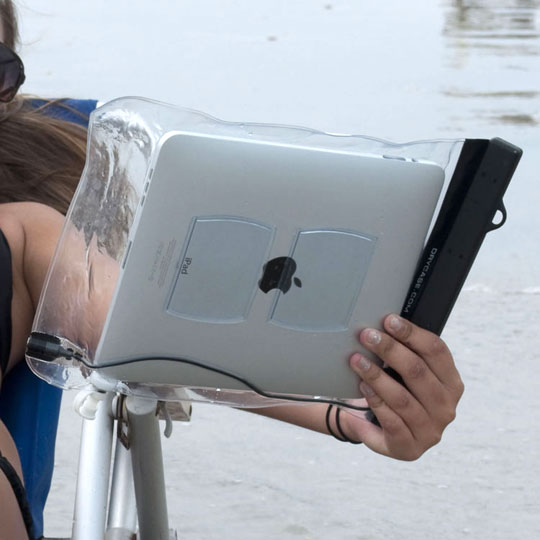 Pour vos prochaines vacances au bord de l’eau, vous pourrez enfin travailler sur votre tablette iPad sans être inquiété grâce à Drycase. Un nouvel étui transparent et waterproof dédié à la tablette Apple ou tout autre produit similaire du même gabarit. Comptez 60$ chez Waterproofcases. Attention, il existe d’autres modèles moins chers chez Amazon à partir de 10 euros.