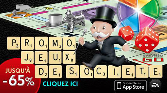Pour les fêtes, Electronic Arts Mobile vous propose jusqu’à 65% de réduction sur les grands classiques de jeux de société pour iPhone et iPod Touch. Pour seulement 0,79 euros vous aurez l’embarras du choix. Alors n’hésitez pas, faites vous plaisir à petit prix avant qu’il ne soit trop tard. Cliquez sur le jeu de votre choix pour être redirigé vers l’AppStore.