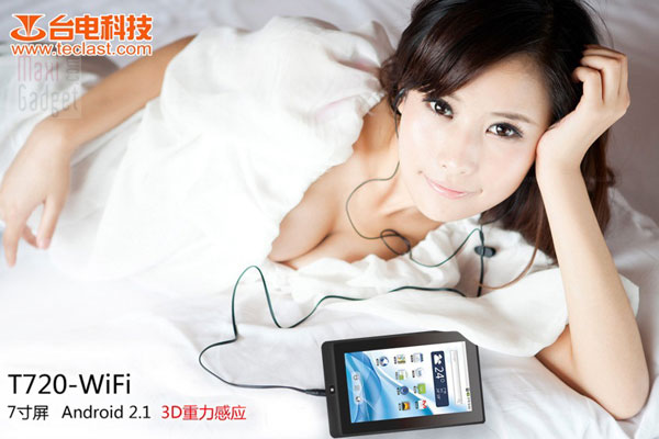 Teclast nous revient en force avec sa nouvelle tablette tactile 7 pouces sous android 2.1. Commercialisée sous la référence T720-3GE, cette tablette extra-plate (65mm d’épaisseur), carbure sous processeur ARM (624Mhz), avec connectivités WiFi et 3G, lecteur multimédia HD 720p, plus une sortie HDMI. Tout un programme ! Prix non communiqué. Date de sortie imminente en Asie.