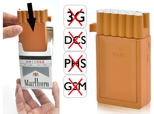 Pour les espions en herbe, voici un nouveau gadget en forme de paquet de cigarettes Marlboro, qui va vous permettre en toute discrétion de brouiller n’importe quelle conversation téléphonique sur tous types de réseaux mobile (GSM, 3G, DCS, PHS). Comptez 35€ pièce.