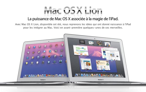 En attendant le lancement officiel prévu pour cet été, le nouveau MAC OS X Lion (10.7) est désormais disponible en téléchargement en version Beta pour les développeurs sur le Mac AppStore. Si vous n’êtes qu’un simple utilisateur comme moi, n’hésitez pas à découvrir toutes les nouvelles fonctionnalités de ce nouvel OS sur le site Apple.