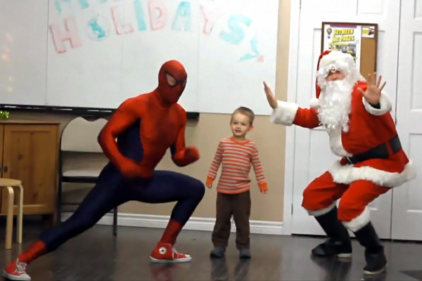 Il s’agit très simplement de faire plaisir à son fils, en lui offrant le plus beau des cadeaux. Il se trouve que le petit garçon de trois ans le bien nommé Kieran, a souhaité avoir une figurine Spider-Man. Son père ne s’est pas contenté d’un simple cadeau, il a eu la bonne idée de lui offrir le vrai Homme Araignée emballé dans un superbe paquet. Imaginez l’étonnement du petit garçon ?